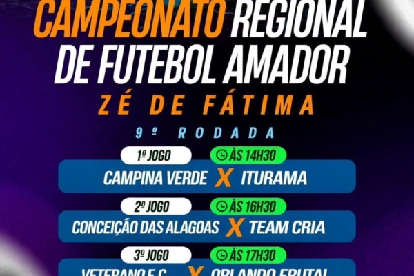 Três jogos marcam a 9ª rodada do Campeonato Regional de Futebol Amador Zé de Fátima