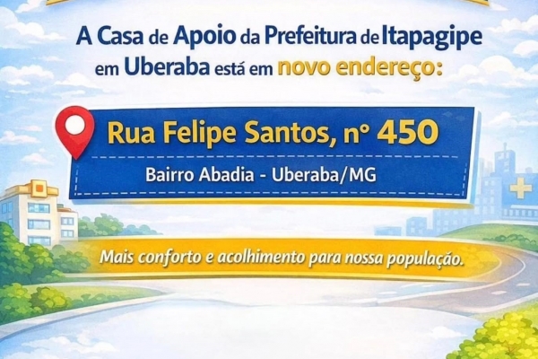 A Prefeitura de Itapagipe informa que a Casa de Apoio do Município em Uberaba está funcionando em novo endereço