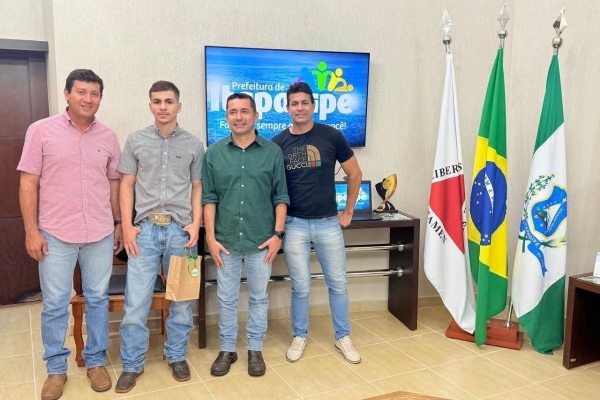 Prefeito e vice recebem jovem campeão de rodeio da Expoita 2025 em Itapagipe