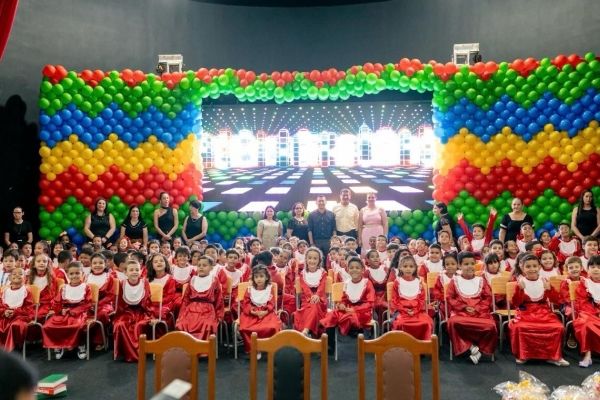 Alunos do CMEI Professora Alice se reuniram com suas famílias no Centro de Eventos para receber seus diplomas simbólicos
