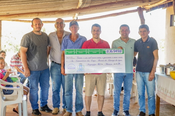 O Prefeito Ricardo Garcia fez a entrega simbólica do cheque de R$ 36.949,55 ao Presidente da Associação Comunitária dos