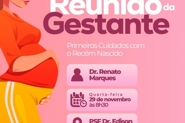 Atenção mamães, nesta quarta-feira-feira, dia 29 de novembro, acontece a reunião da gestante no PSF Dr. Edison Rodrigues