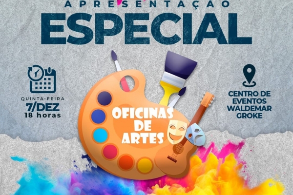 Nesta quinta-feira, dia 07 de dezembro, acontece o encerramento das oficinas de artes