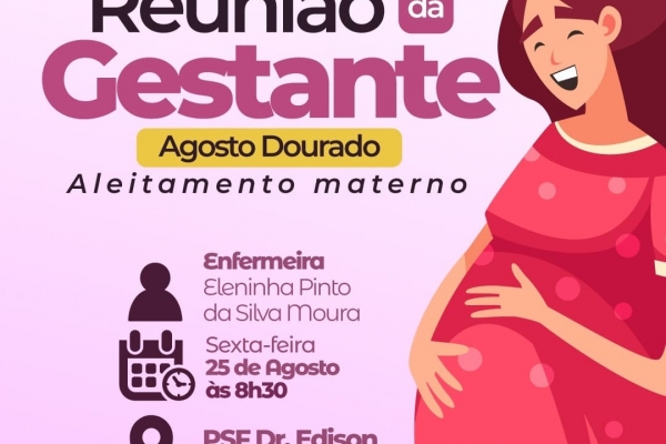 Atenção mamães, nesta sexta-feira, dia 25 de agosto, acontece a Reunião da Gestante no PSF Dr. Edison Rodrigues