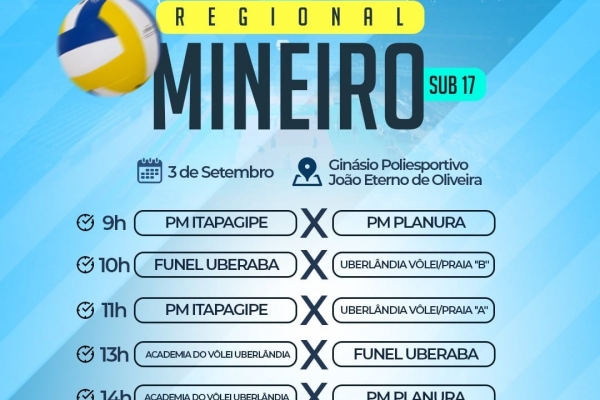 Neste domingo, dia 03 de setembro, vai rolar mais uma etapa do Campeonato Regional Mineiro de Vôlei Sub 17 em Itapagipe