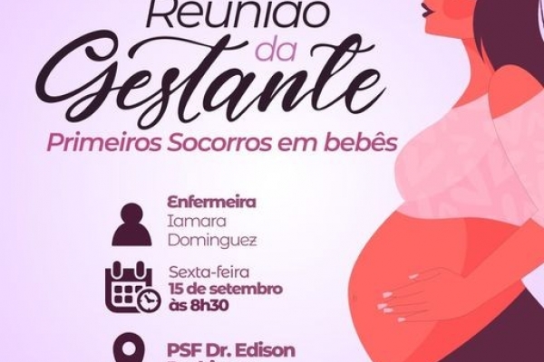 Atenção mamães, na próxima sexta-feira, dia 15 de setembro, acontece a Reunião da Gestante no PSF Dr. Edison Rodrigues