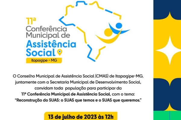 Nesta quinta-feira, dia 13 de julho, a partir das 12 horas, acontece a 11° Conferência Municipal de Assistência Social