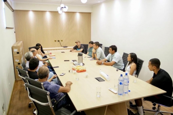 O prefeito Ricardo Garcia reuniu-se no Banco Sicoob com a diretoria e com os empresários proprietários das quadras de B