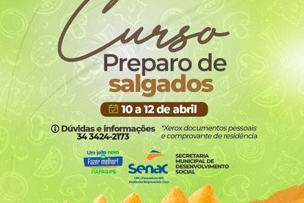 A Prefeitura de Itapagipe em parceria com o SENAC trás mais um curso profissionalizante