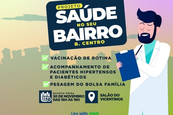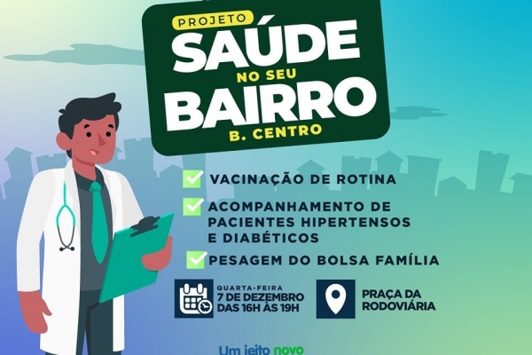 Equipe da saúde estará na Praça da Rodoviária para realizar mais uma etapa do projeto Saúde No Seu Bairro