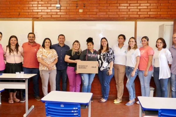 O Prefeito Ricardo Garcia fez a entrega Notebooks ás turmas vencedoras da Campanha de vacinação SAÚDE PARA TODOS