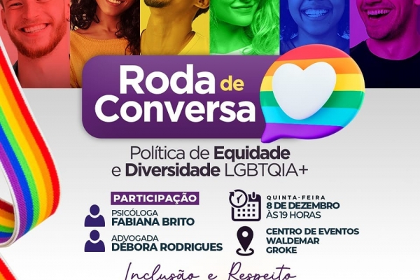 Nesta quinta-feira, dia 08 de dezembro, Roda de Conversa ''Política de Equidade e Diversidade LGBTQIA+''