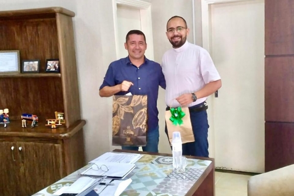 O prefeito Ricardo Garcia recebeu nessa tarde, 15 de dezembro, a honrosa visita do padre Maik Alex Savazi de Souza