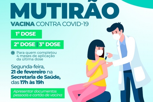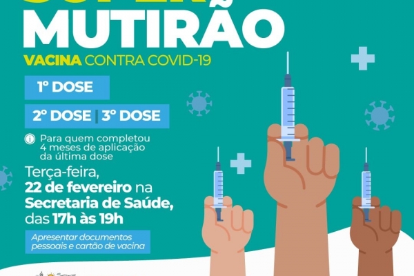 Hoje, terça-feira, dia 22 de fevereiro, acontece mais um supermutirão de vacinação contra a Covid-19.