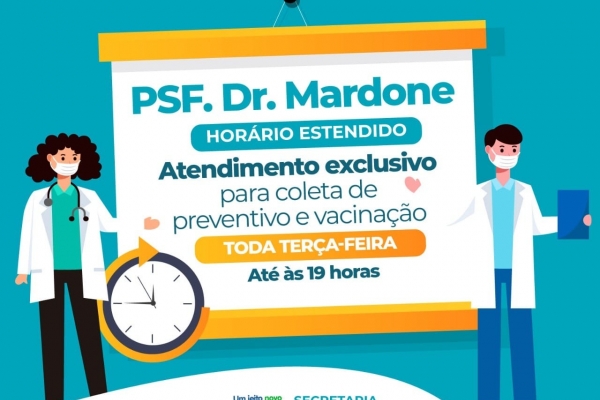 Agora todas as terças, o PSF Dr. Mardone estará funcionando até às 19:00.
