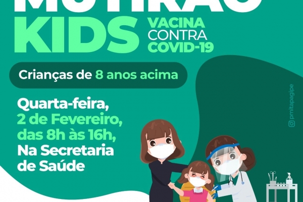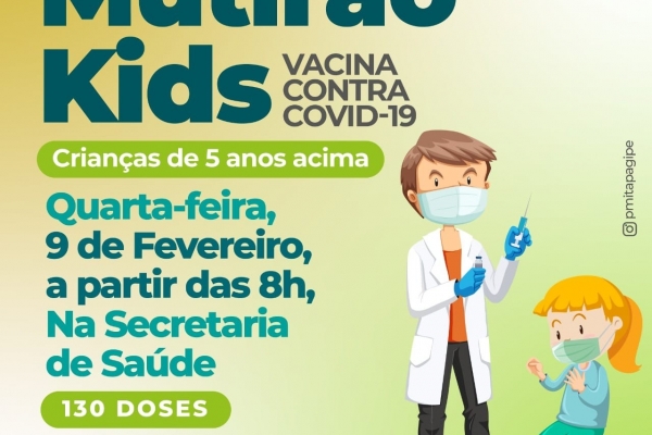 Nesta quarta-feira, dia 02 de fevereiro, acontece mais um mutirão kids para crianças de 8 anos acima sem comorbidades.