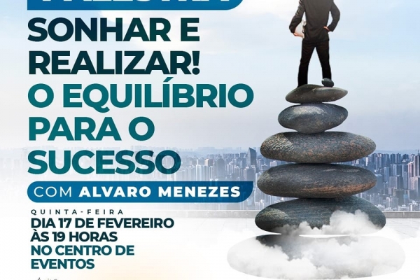 Nesta quinta-feira, dia 17 de fevereiro acontecerá a palestra motivacional: SONHAR E REALIZAR! O EQUILÍBRIO PARA O SUCES