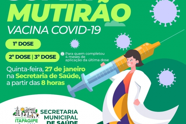 Nesta quinta-feira, dia 27 de janeiro, acontece mais um supermutirão de vacinas contra a COVID-19.