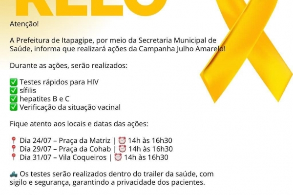 Prefeitura de Itapagipe intensifica ações da Campanha Julho Amarelo