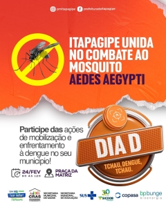 Neste sábado, dia 24 de fevereiro, acontece o Dia D do Combate a Dengue no município de Itapagipe.