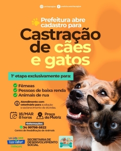 Serão contemplados nessa primeira etapa, fêmeas, pessoas de baixa renda e animais de rua.