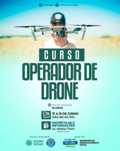 Estão abertas as inscrições para o curso de Operador de Drone , que acontecerá entre os dias 17 a 19 de junho.