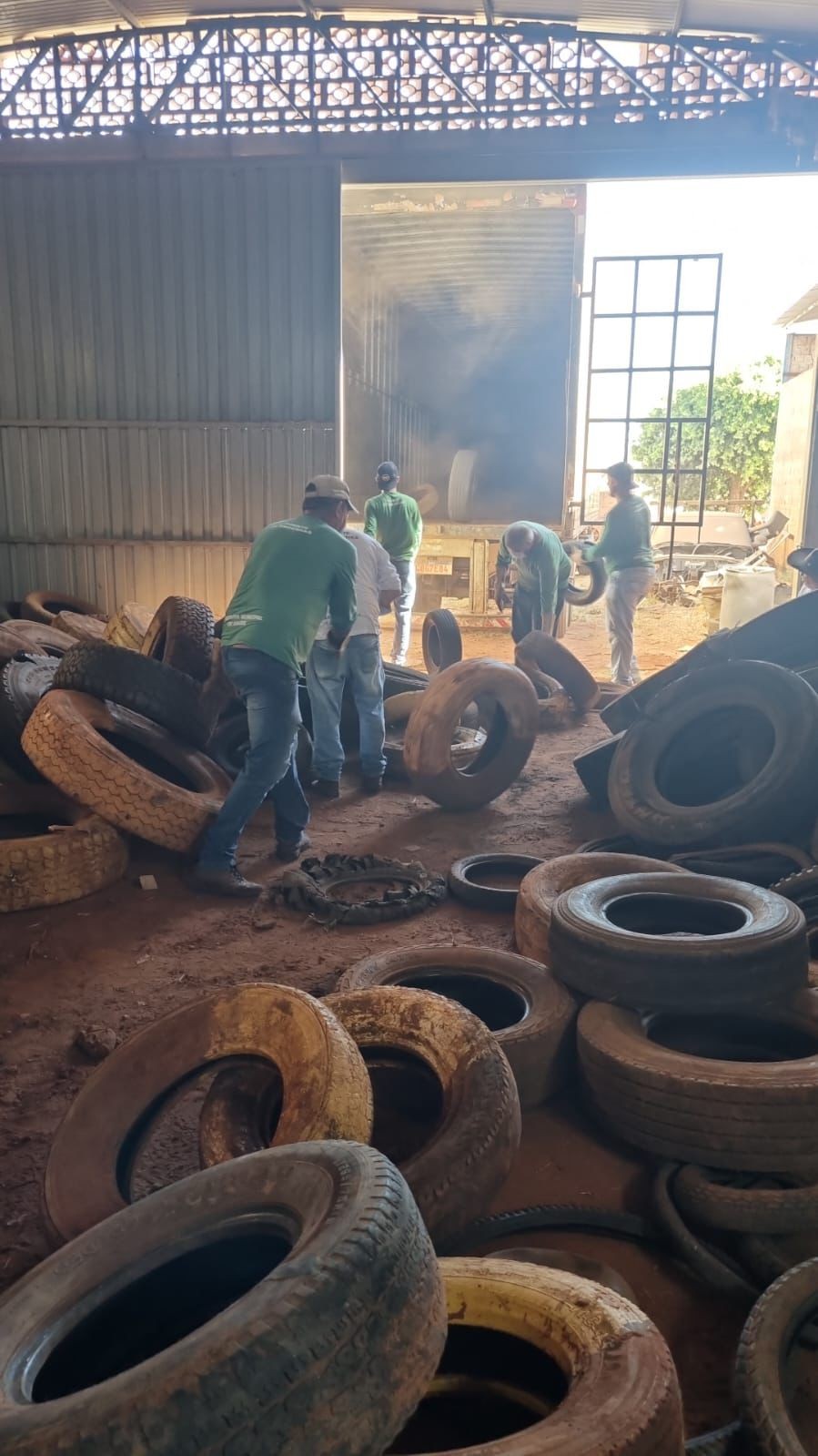 Esses pneus, coletados em borracharias e comércios locais, são armazenados e posteriormente enviados para reciclagem. Essa ação tem o objetivo de eliminar possíveis criadouros do mosquito Aedes Aegypti, transmissor da dengue, chikungunya e zika.