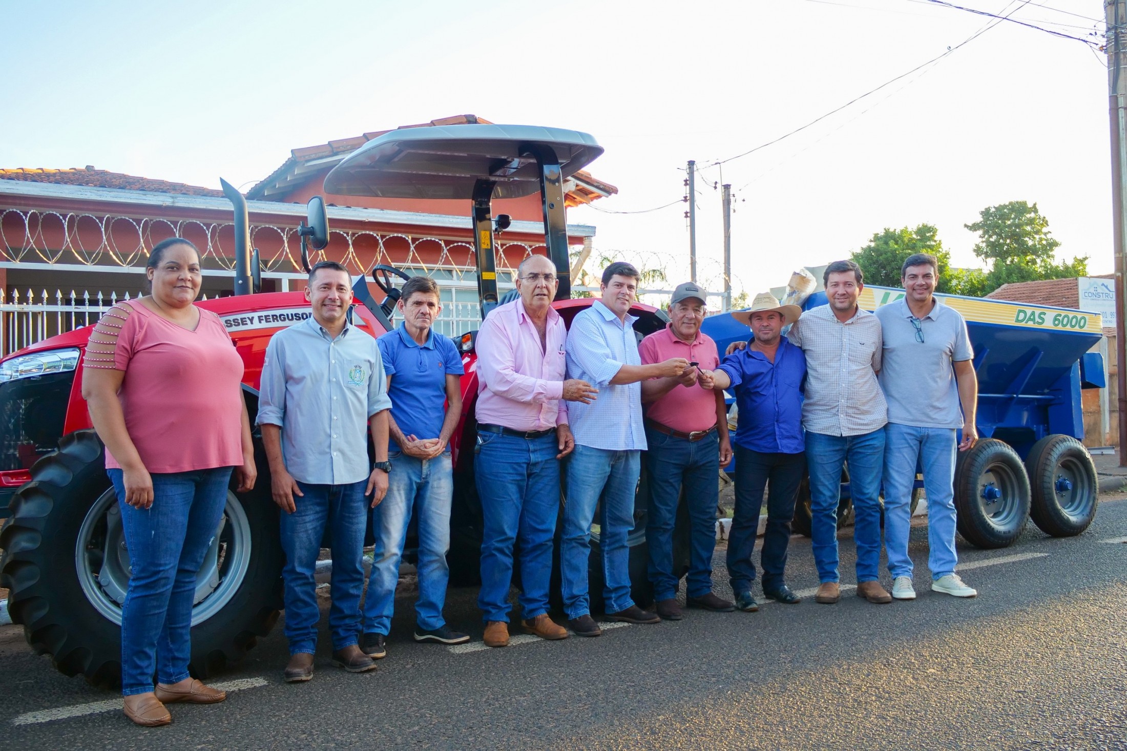 Um trator e o distribuidor de calcário foram destinados à Comunidade Santo Antônio das Duas Pontes, enquanto o outro trator foi entregue para a Secretaria de Governo, Agronegócio e Desenvolvimento Econômico, para auxiliar nos trabalhos cotidianos do município.