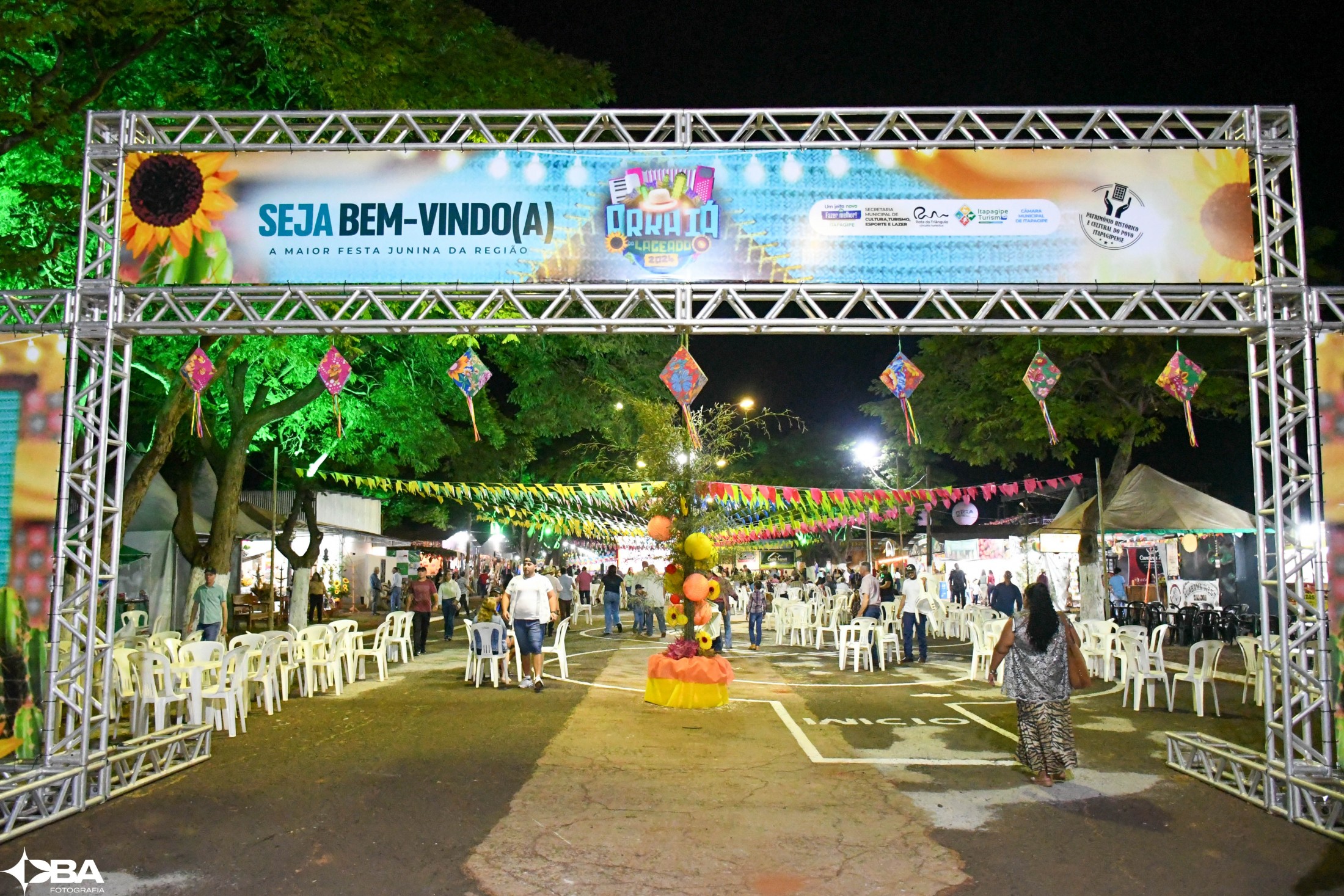 Todo o parque de exposição estava decorado com o clima junino, criando um ambiente festivo e acolhedor. Duas praças de alimentação ofereceram ao público uma variedade de comidas típicas e bebidas para saborear durante a festa.