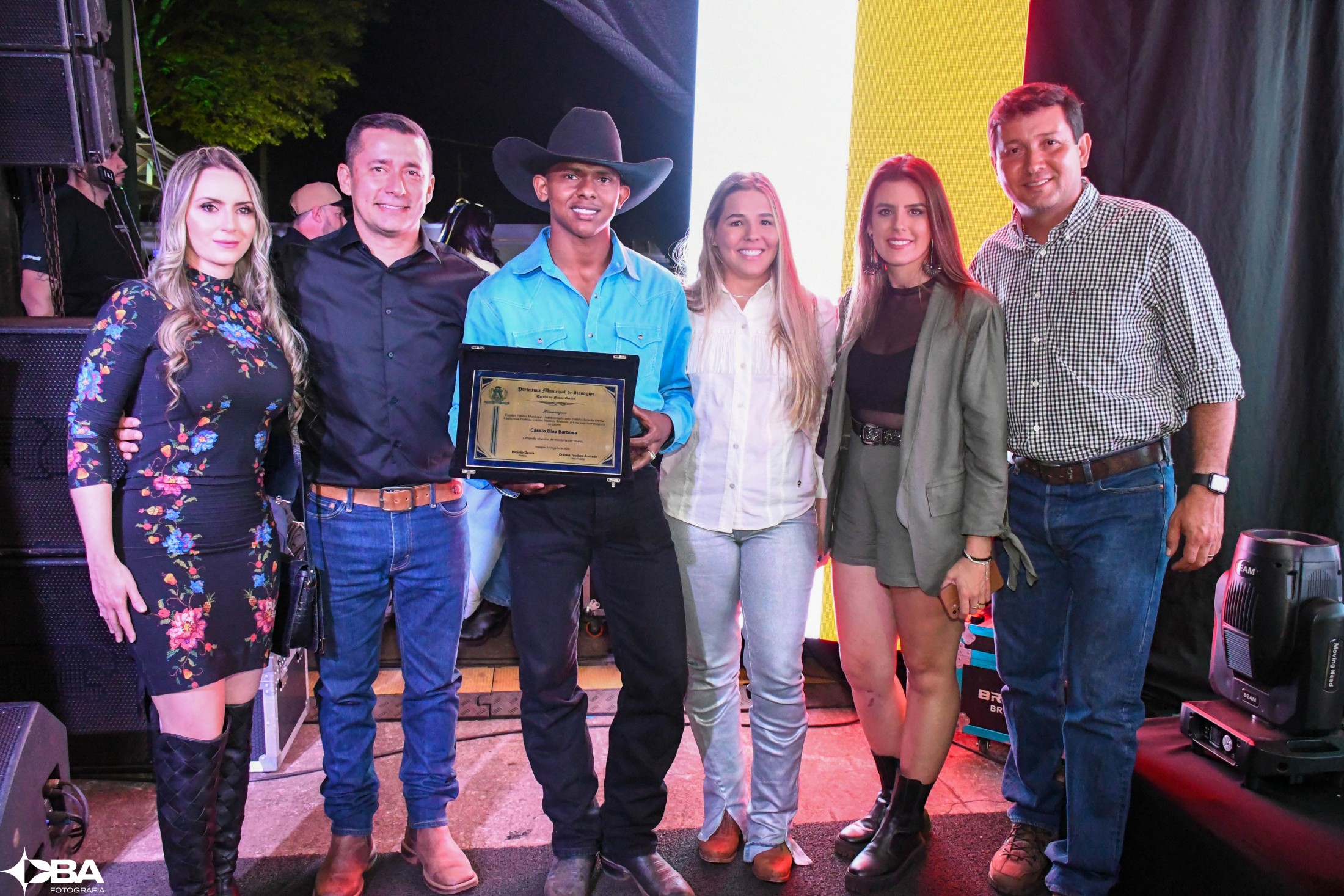 Um momento especial da noite foi a homenagem feita pela prefeitura municipal através do prefeito Ricardo Garcia e pelo vice-prefeito Craides Teodoro Andrade ao competidor em montarias em touros Cássio Dias Barbosa, atual campeão mundial, que prestigiou o evento.