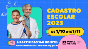 As inscrições devem ser feitas através do site www.cadastroescolar.educacao.mg.gov.br.