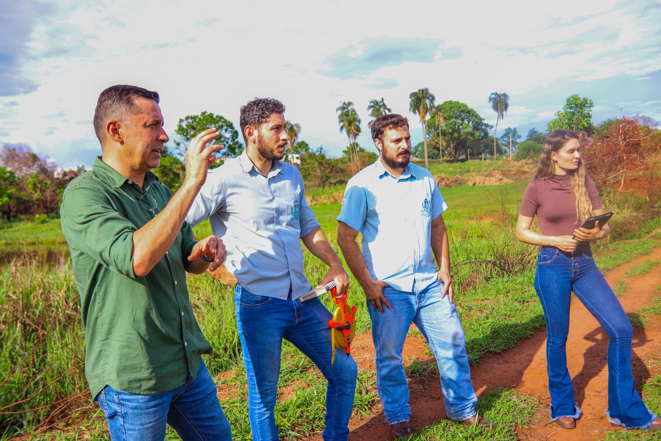 O prefeito Ricardo Garcia, acompanhado dos secretários André Barbosa (Meio Ambiente) e José Antônio Ferreira (Obras), além da arquiteta Jaqueline Franco, visitou nesta quarta-feira as obras de limpeza do Lago Castro, que estão em fase de execução.