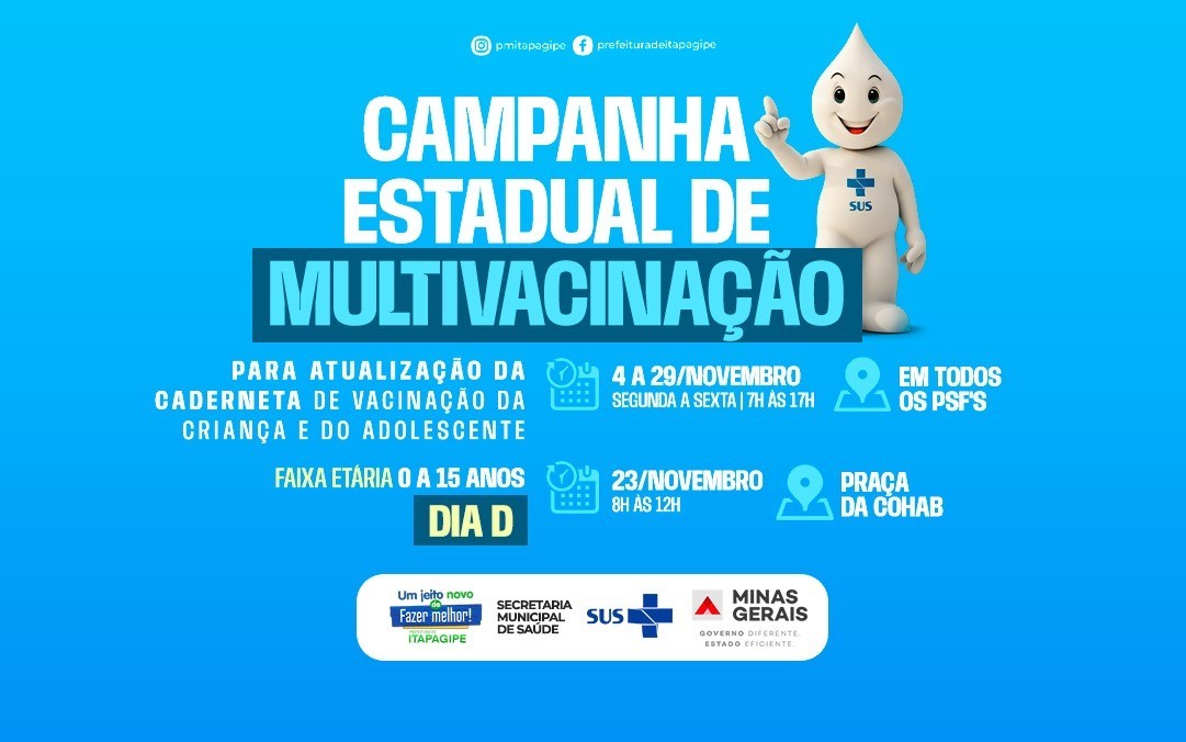 A partir de hoje, 4 de novembro, Minas Gerais inicia a Campanha Estadual de Multivacinação 2024, visando atualizar o cartão de vacinas de crianças e adolescentes com menos de 15 anos.