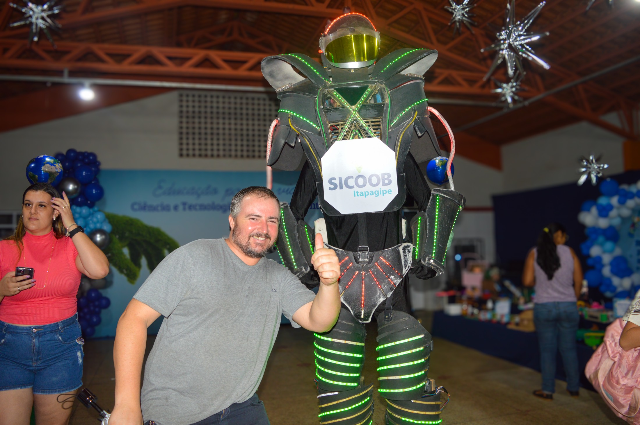 O projeto foi concluído com uma Feira Científica realizada no dia 21/11/2024, onde os alunos apresentaram os trabalhos desenvolvidos ao longo das atividades. O evento contou com a presença do robô do Sicoob, que proporcionou uma interação prática com a robótica, além de 4 drones, incluindo um modelo agrícola, destacando e reforçando o papel da tecnologia como uma ferramenta essencial para o aprendizado e a transformação do conhecimento.