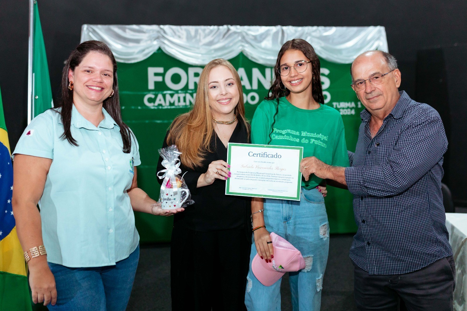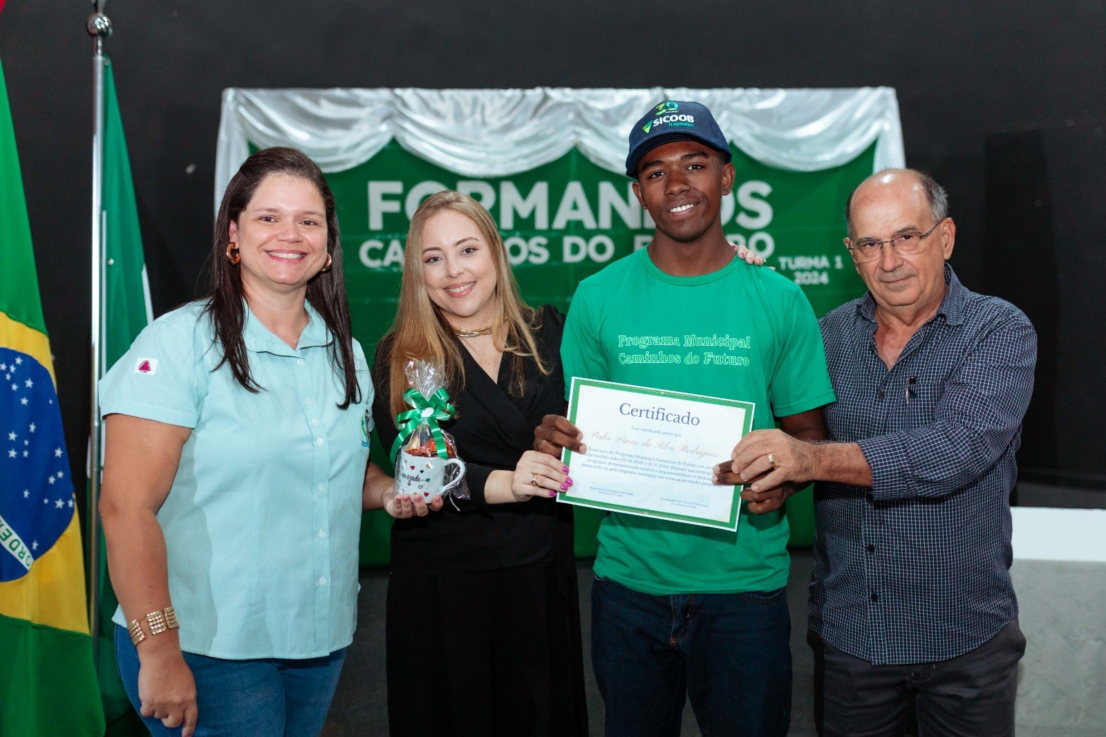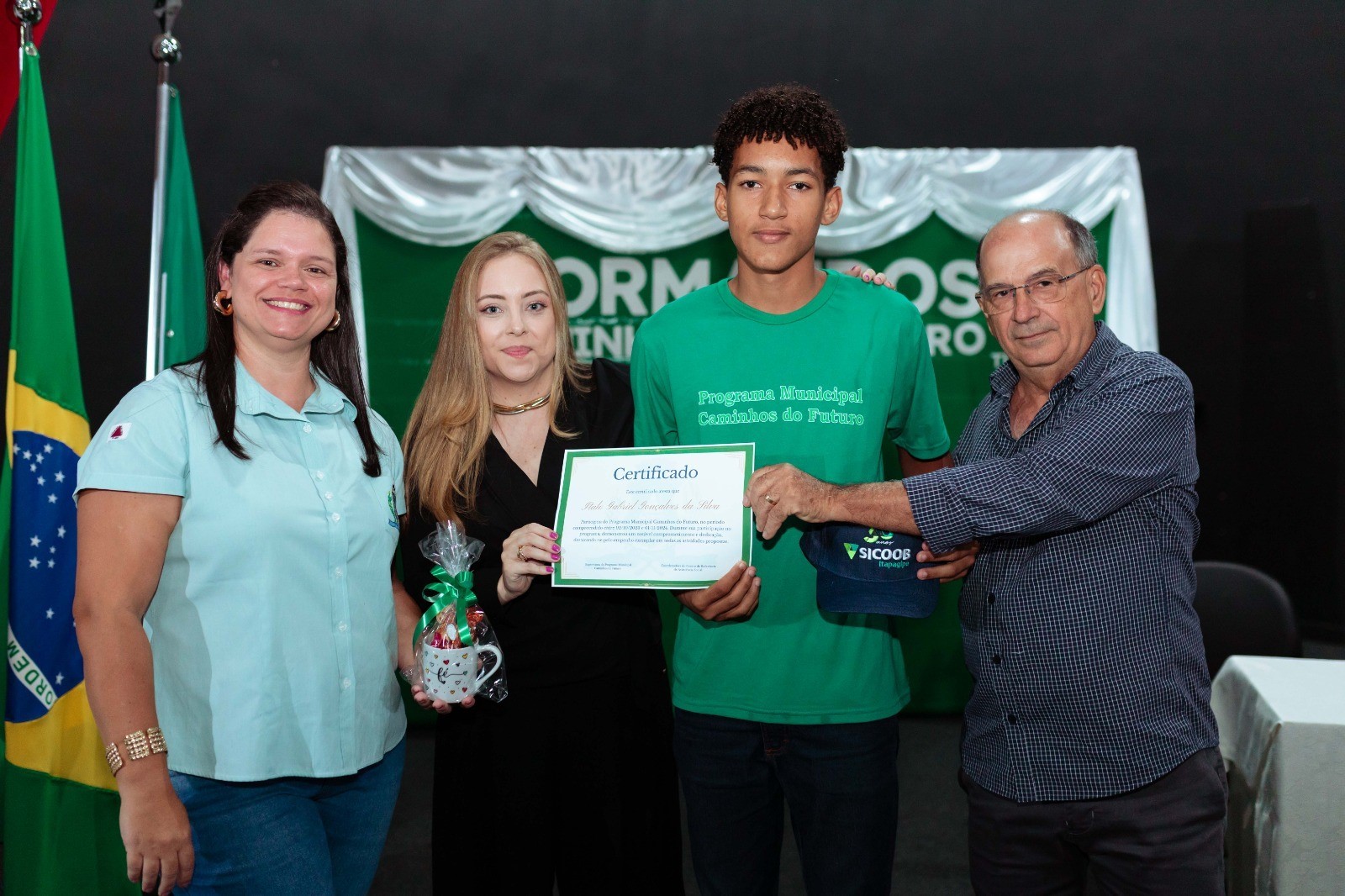 Embora não estivesse presente devido a compromissos em Brasília, o prefeito Ricardo Garcia parabenizou os formandos e destacou a importância do programa para o desenvolvimento e capacitação dos jovens, reafirmando o apoio da gestão municipal à iniciativa.