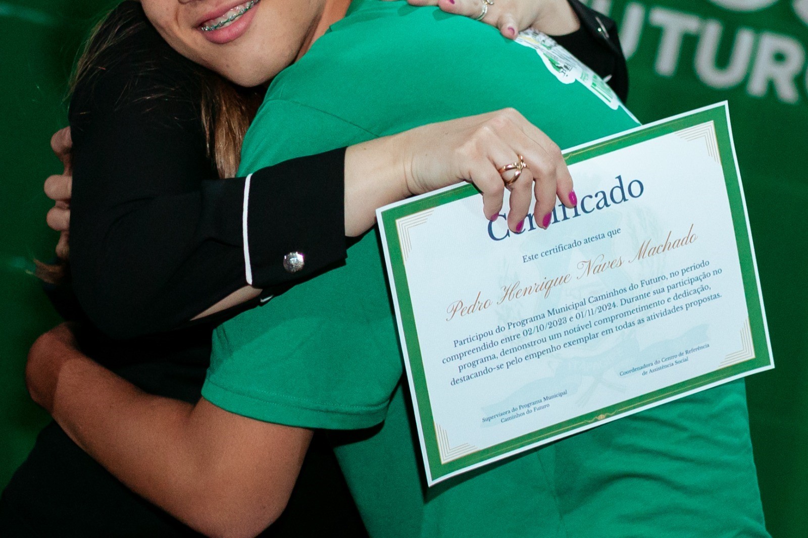 Na última quarta-feira, 27 de novembro, o Centro de Eventos Waldemar Groke foi palco da cerimônia de formatura da 1ª turma do Programa Municipal “Caminhos do Futuro”. O evento contou com a presença de 40 formandos, familiares e autoridades municipais, marcando um momento de celebração e reconhecimento aos jovens participantes.