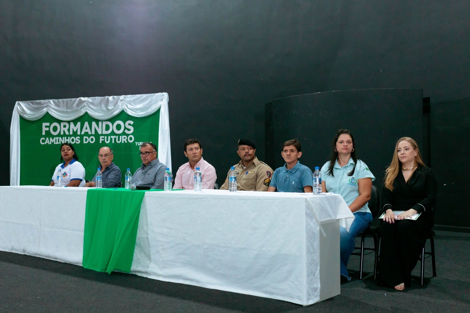 A solenidade teve início com a execução do Hino Nacional, seguido do discurso do vice-prefeito Craides Teodoro, que parabenizou os formandos e suas famílias, destacando a importância do apoio de todos os envolvidos no projeto. Ele desejou um futuro brilhante a cada jovem que concluiu essa etapa.