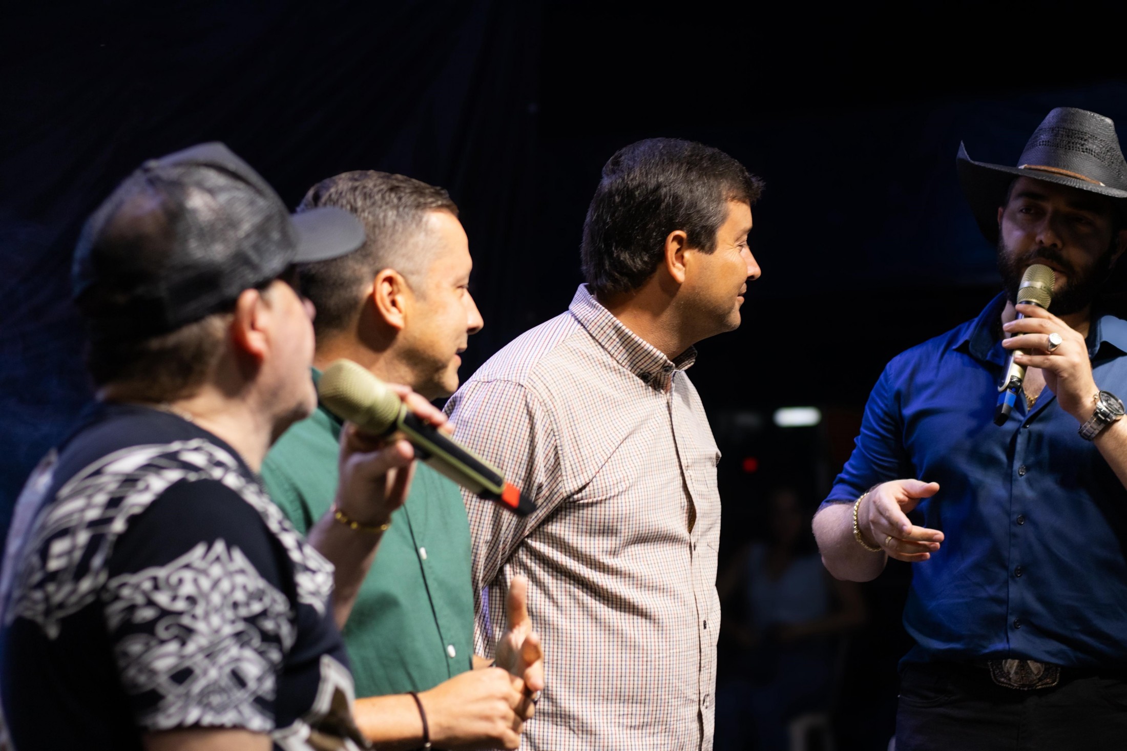 No palco, o prefeito Ricardo Garcia e o vice-prefeito Craidim aproveitaram a ocasião para anunciar o tão esperado Arraiá do Lageado 2025, um dos eventos mais tradicionais da região.