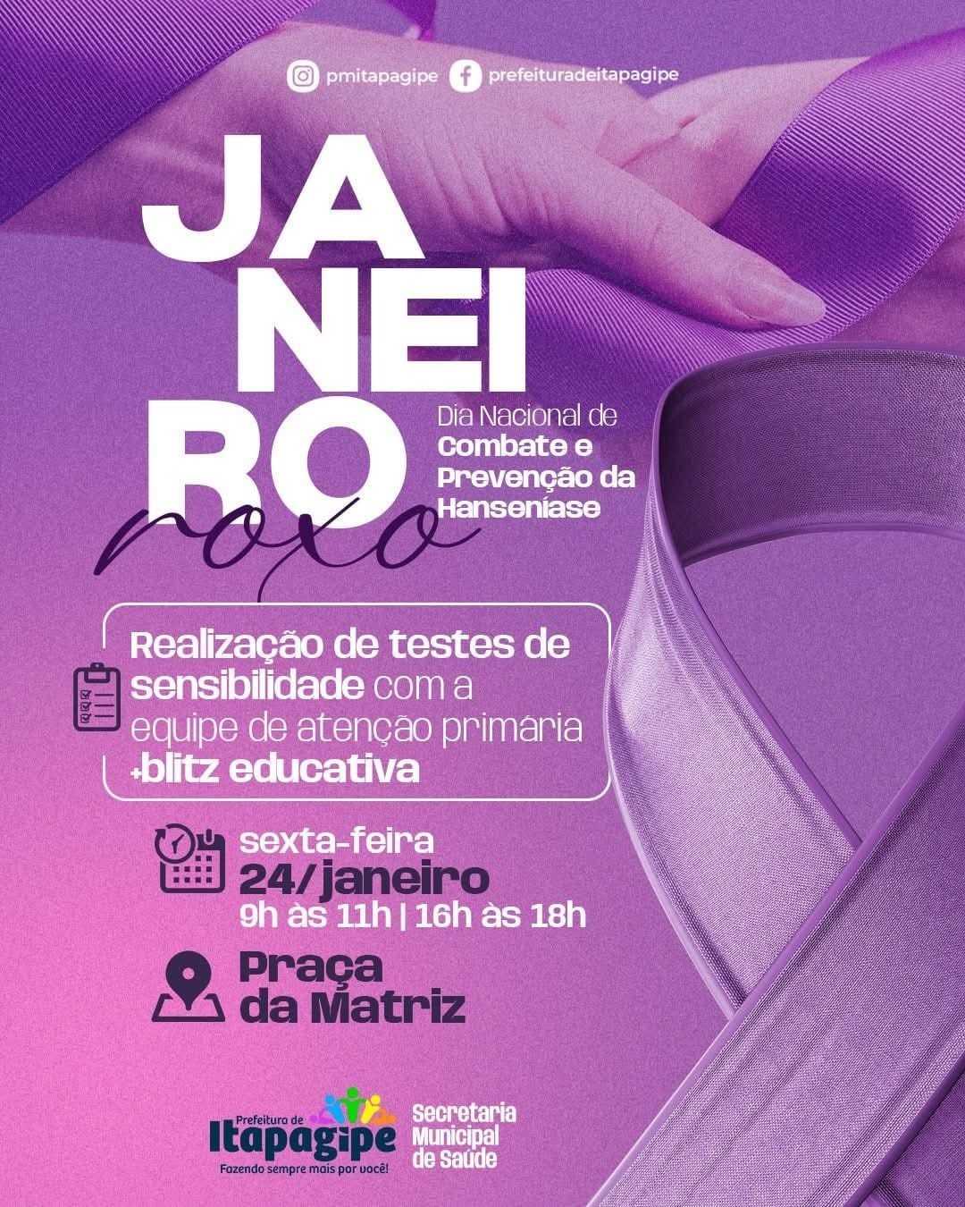A Secretaria Municipal de Saúde está engajada no Janeiro Roxo, campanha nacional dedicada ao combate e à conscientização sobre a hanseníase.