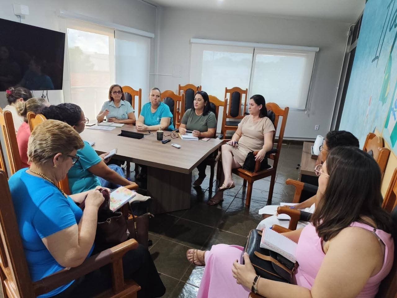 O encontro contou com a participação da secretária de Educação, Lenira Carneiro e das diretoras das Escolas Municipais, além da Secretária Municipal de Saúde, Maria Elízia Leonel Roldão, acompanhada das servidoras Evelin Amorim e Cláudia Costa.