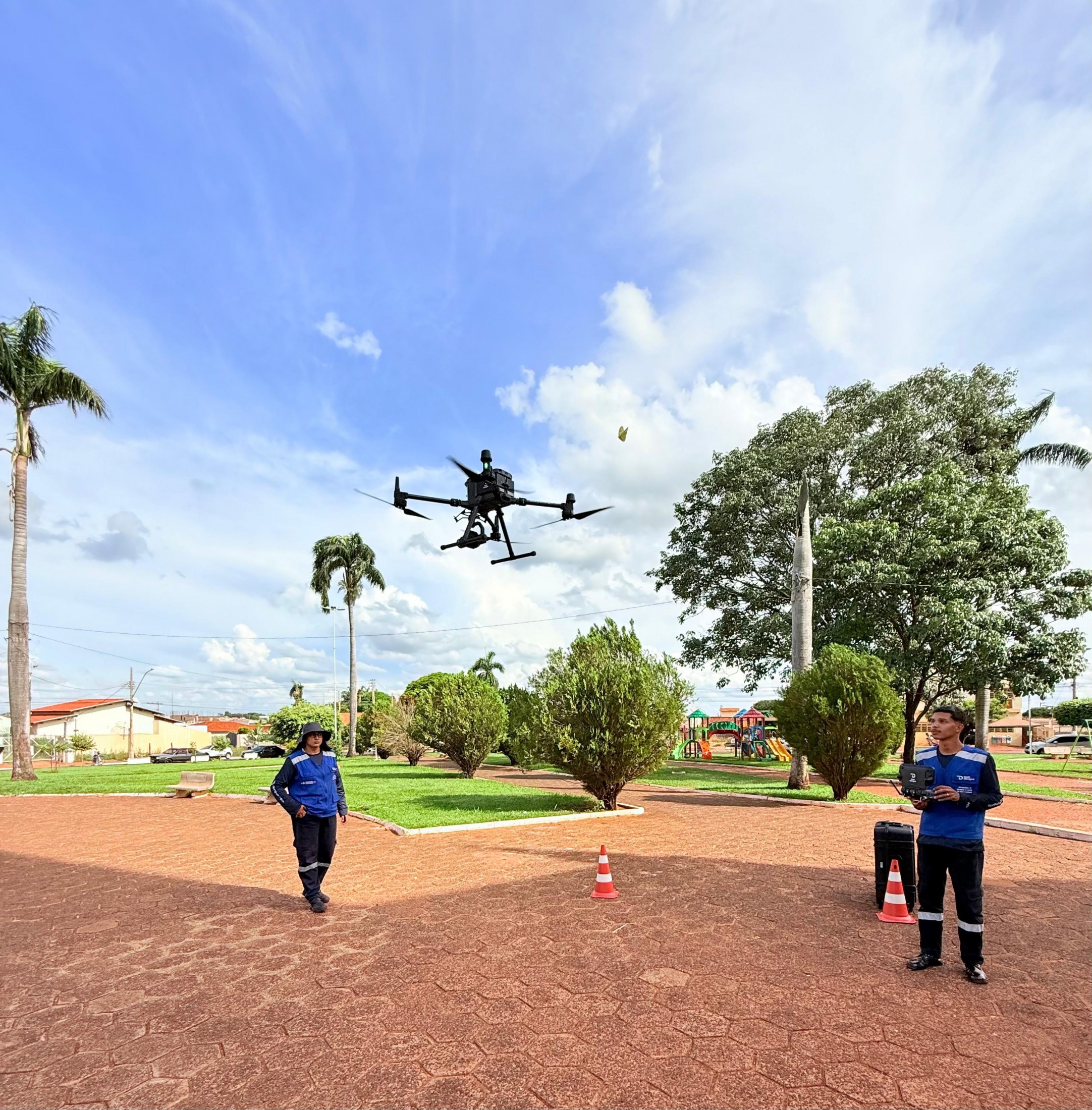 Durante a operação, o coordenador de Vigilância Ambiental, Paulo Vinícius, e os agentes de endemias do município atuaram em campo, dando suporte ao piloto do drone e utilizando sua experiência para identificar e registrar possíveis focos do mosquito.