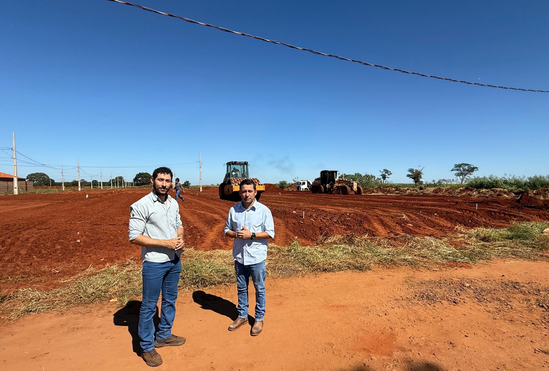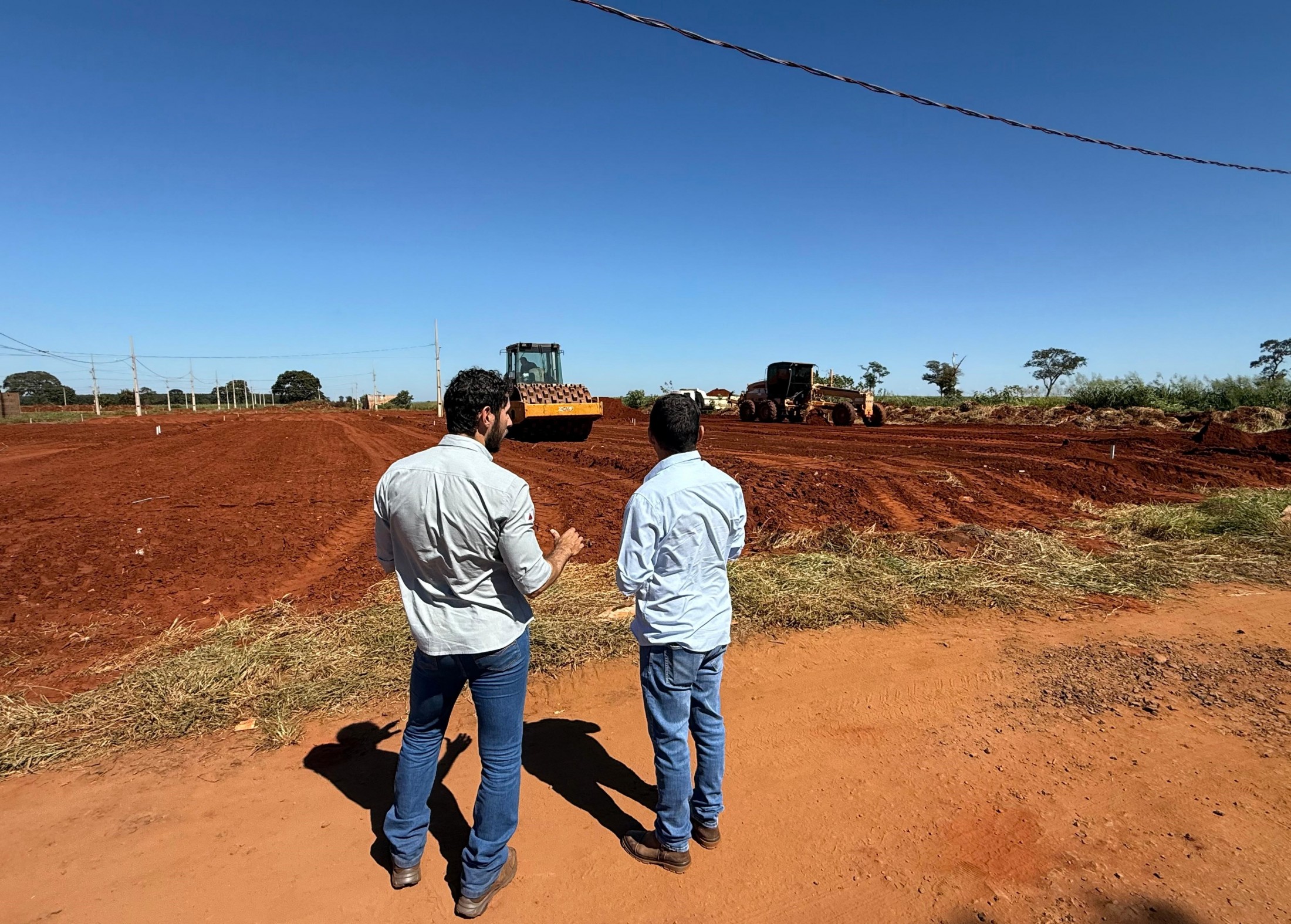 Em seguida, o prefeito, acompanhado pelo Secretário de Obras, José Antônio Ferreira, visitou o início da construção do Residencial Quirino Menezes Barbosa II, com entrega prevista para daqui a 14 meses, e que contará com a construção de 80 moradias, parte do esforço para ampliar o acesso à moradia no município.