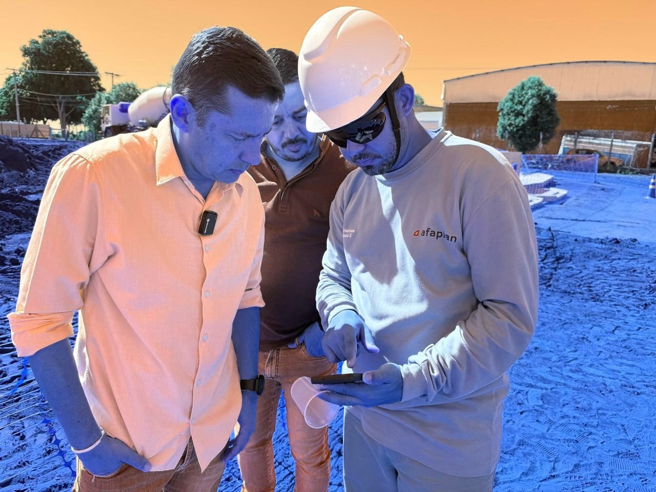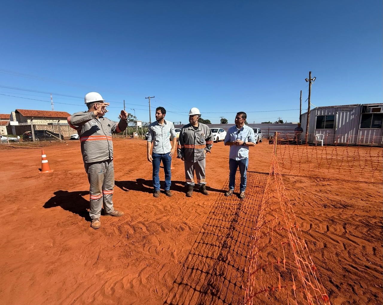 A primeira parada foi na obra da subestação de energia, onde estão sendo investidos mais de R$ 40 milhões, incluindo a linha de transmissão. O prefeito foi recebido por Victor Hugo Chaves, engenheiro responsável pela obra; Ricardo Henrique Vieira Pedrosa, coordenador de obras; Roberto Júnior, técnico em segurança do trabalho; e Diego Neves, fiscal de obras da Cemig.