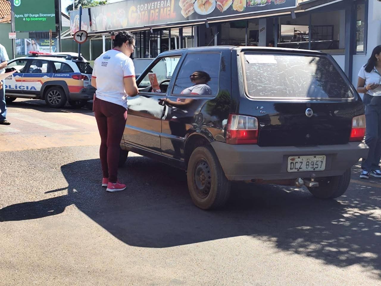 Durante a blitz, as equipes distribuíram panfletos informativos e conversaram com a população, esclarecendo dúvidas e orientando sobre como identificar e reagir diante de situações suspeitas.