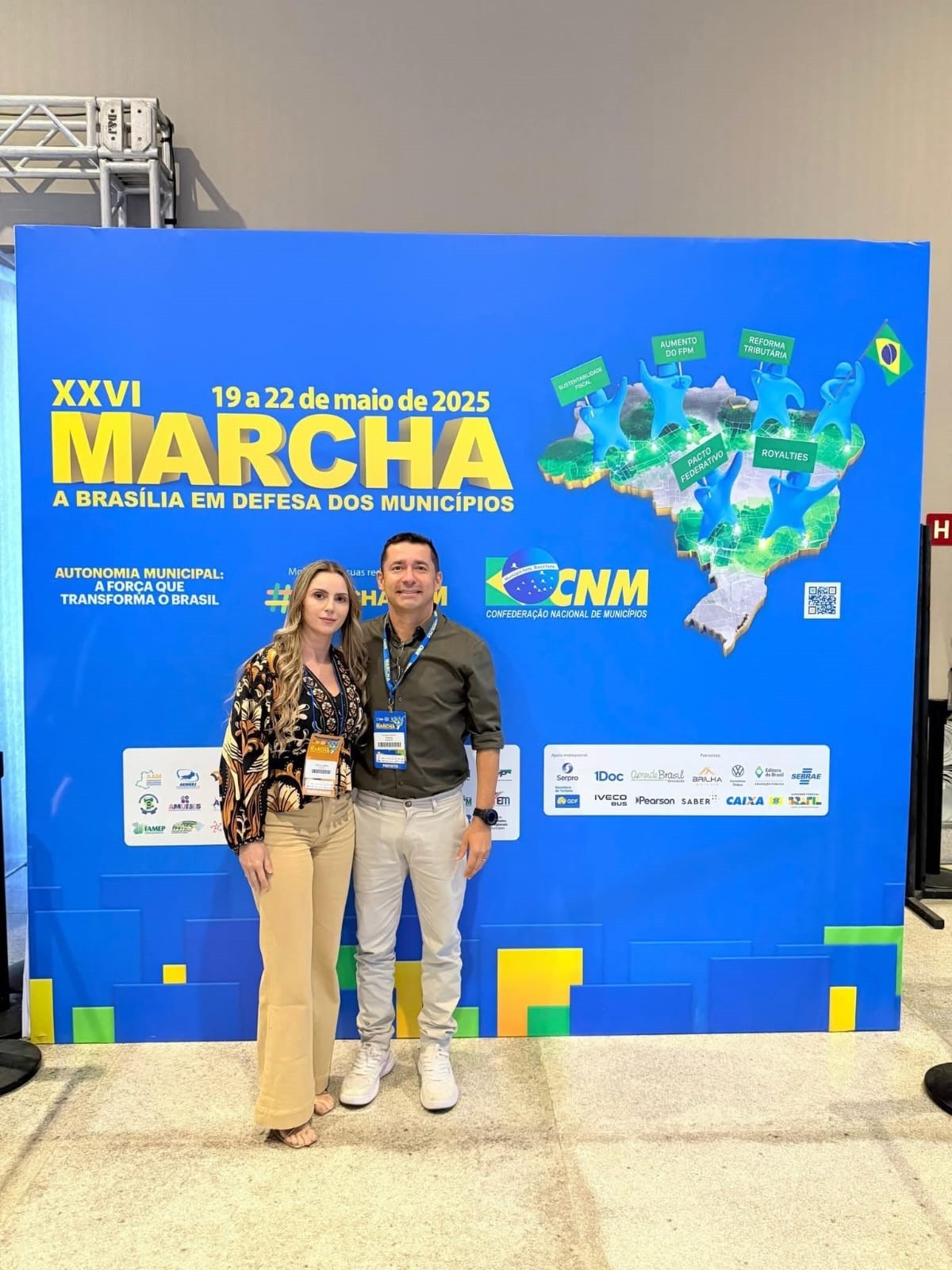 O prefeito de Itapagipe, Ricardo Garcia, e a secretária municipal de Desenvolvimento Social, Nagila Garcia, estão em Brasília nesta semana participando da 25ª edição da Marcha dos Prefeitos.