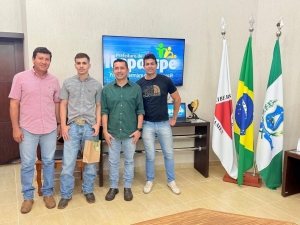 Prefeito e vice recebem jovem campeão de rodeio da Expoita 2025 em Itapagipe