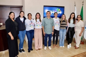 Em reunião realizada nesta quinta-feira, 12 de junho, o prefeito Ricardo Garcia recebeu em seu gabinete representantes do grupo AMEI (Associação de Apoio às Mães Especiais de Itapagipe), acompanhado da secretária de Educação, Lenira Carneiro, e da assessora pedagógica, Joessiani Garcia e da Secretária de Desenvolvimento Social, Nagila Garcia.