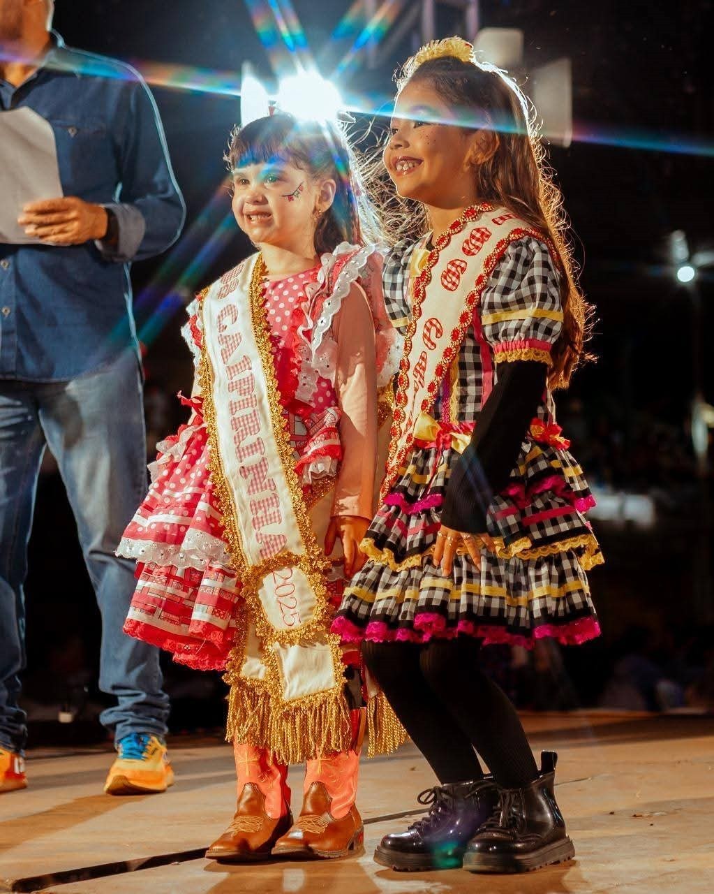 Na sequência, a Banda Evolução subiu ao palco, animando o público com muito forró. A noite também contou com um momento especial de homenagens, marcado pela apresentação da nova embaixadora de 2025.