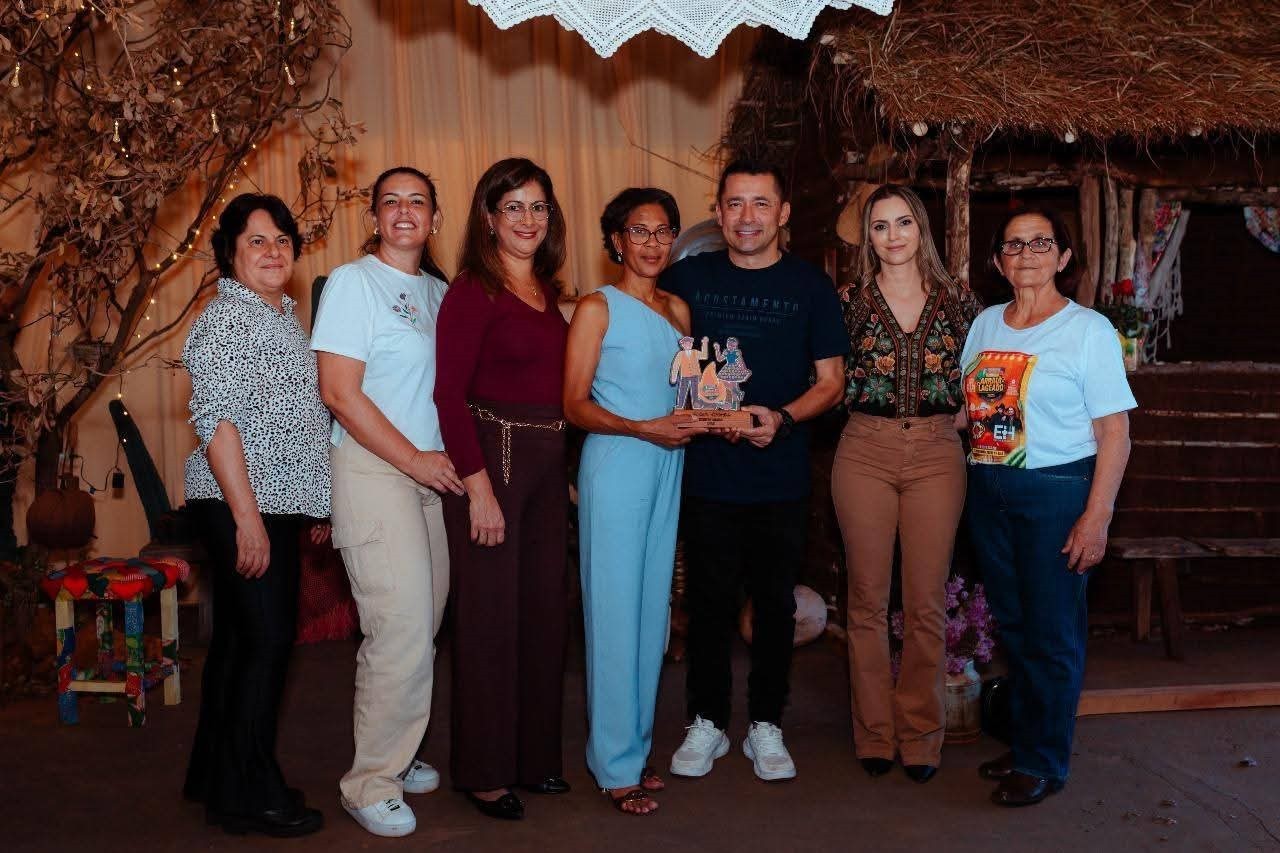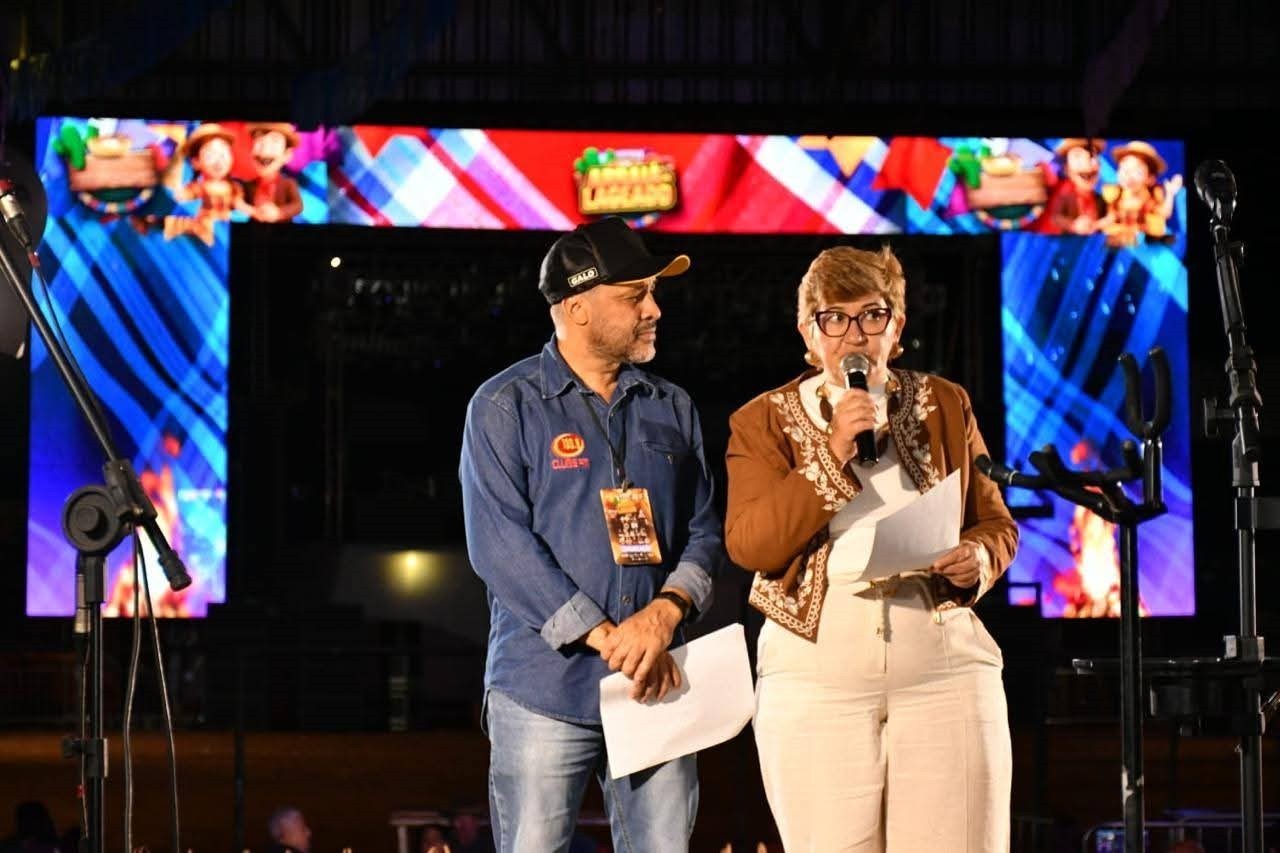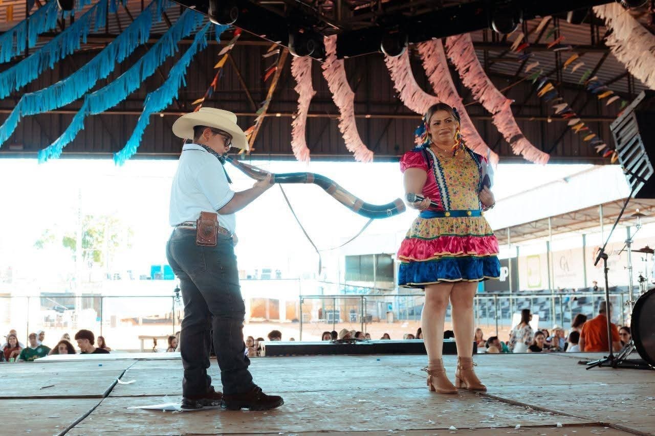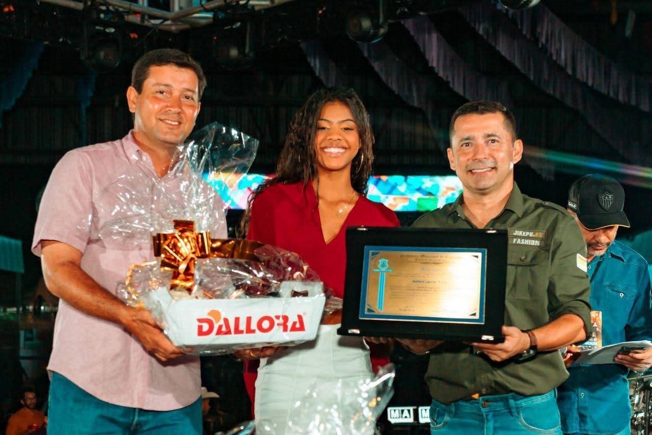 O prefeito Ricardo Garcia e o vice-prefeito Craidim prestaram tributo à berranteira Rarissa Lombardi e Silva, embaixadora do Arraiá do Lageado 2024, e à rainha da Expoita 2025, agora também embaixadora do Arraiá do Lageado 2025, a jovem Isabela Leonel.