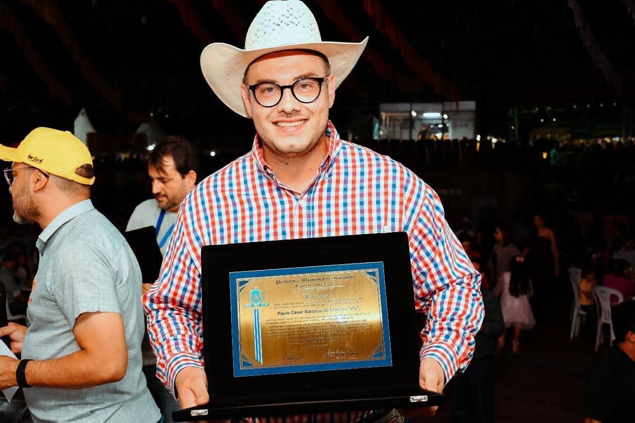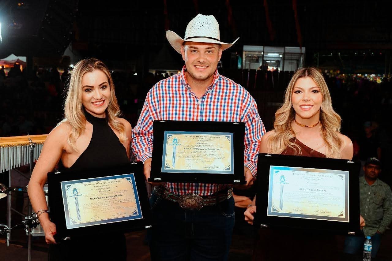 No sábado, foram homenageados outros grandes nomes: o campeão da Expoita 2025, Bruno Vicente Barbosa Duarte; a campeã da prova dos Três Tambores da Expoita, Cíntia Barbosa Ferreira; e o comentarista de rodeio, Paulo César Barbosa de Oliveira, o popular “PC”.